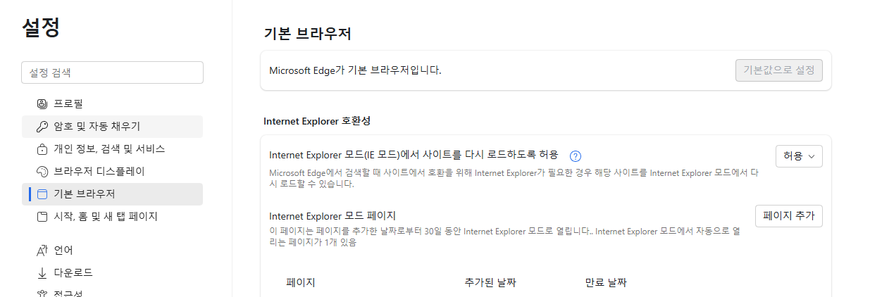 엣지 브라우저 설정 변경하기
