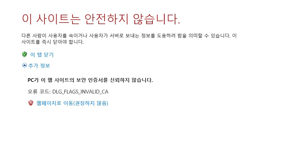 ⚠️ 안전하지 않은 페이지 경고 넘기기